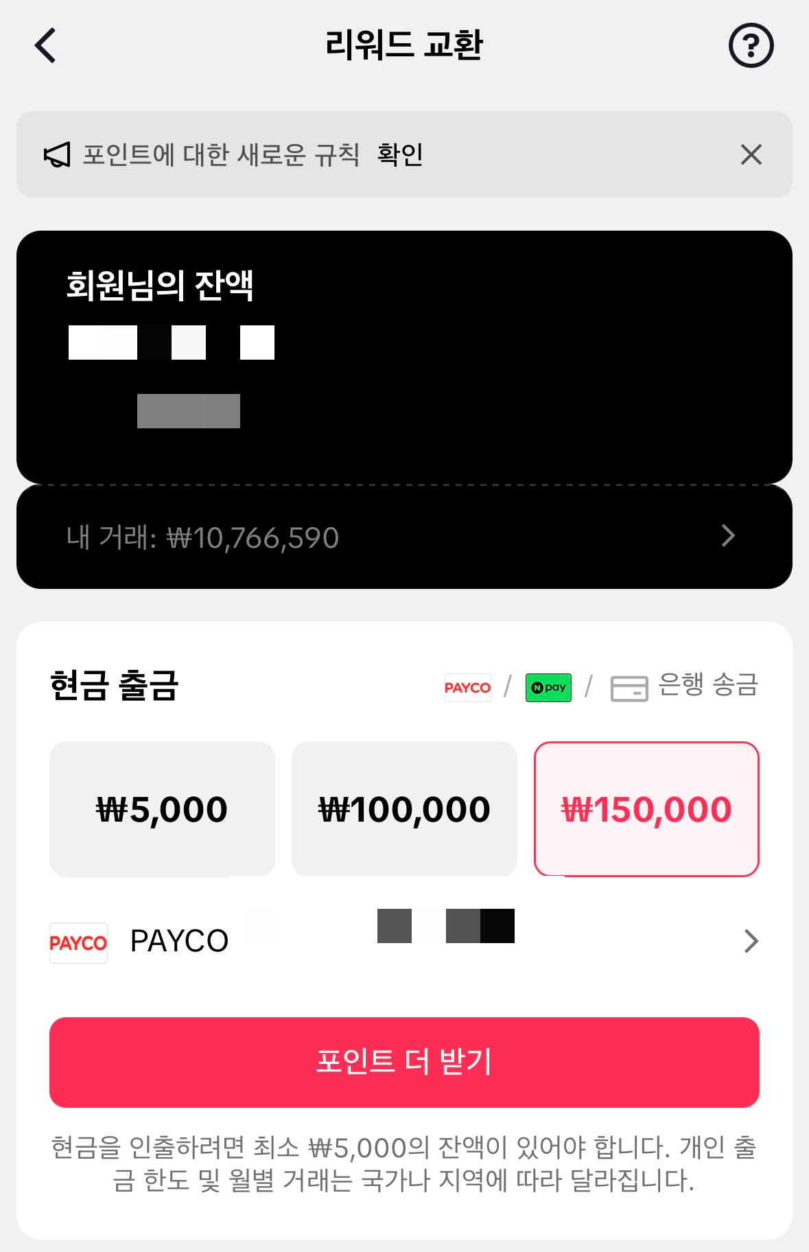 적립된 포인트는 계좌, 네이버페이, 페이코 등으로 전환 가능해