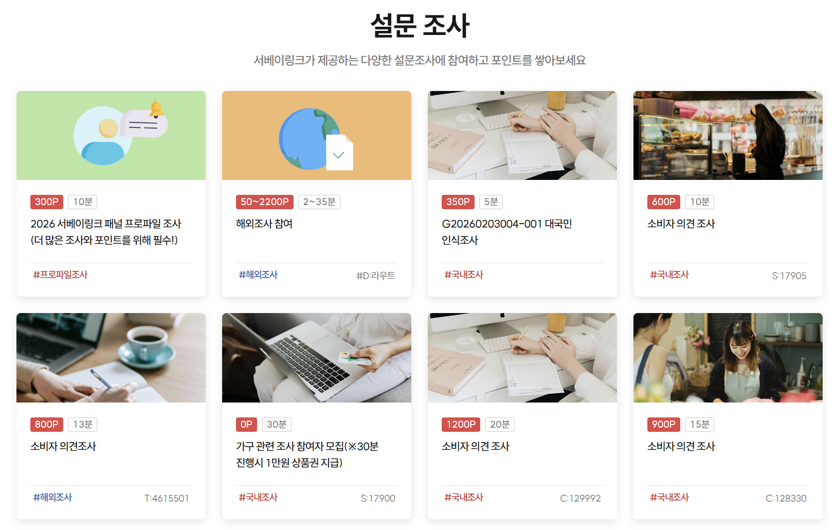 서베이링크는 국내에서 이용할 수 있는 설문조사 기반 앱테크 서비스로,