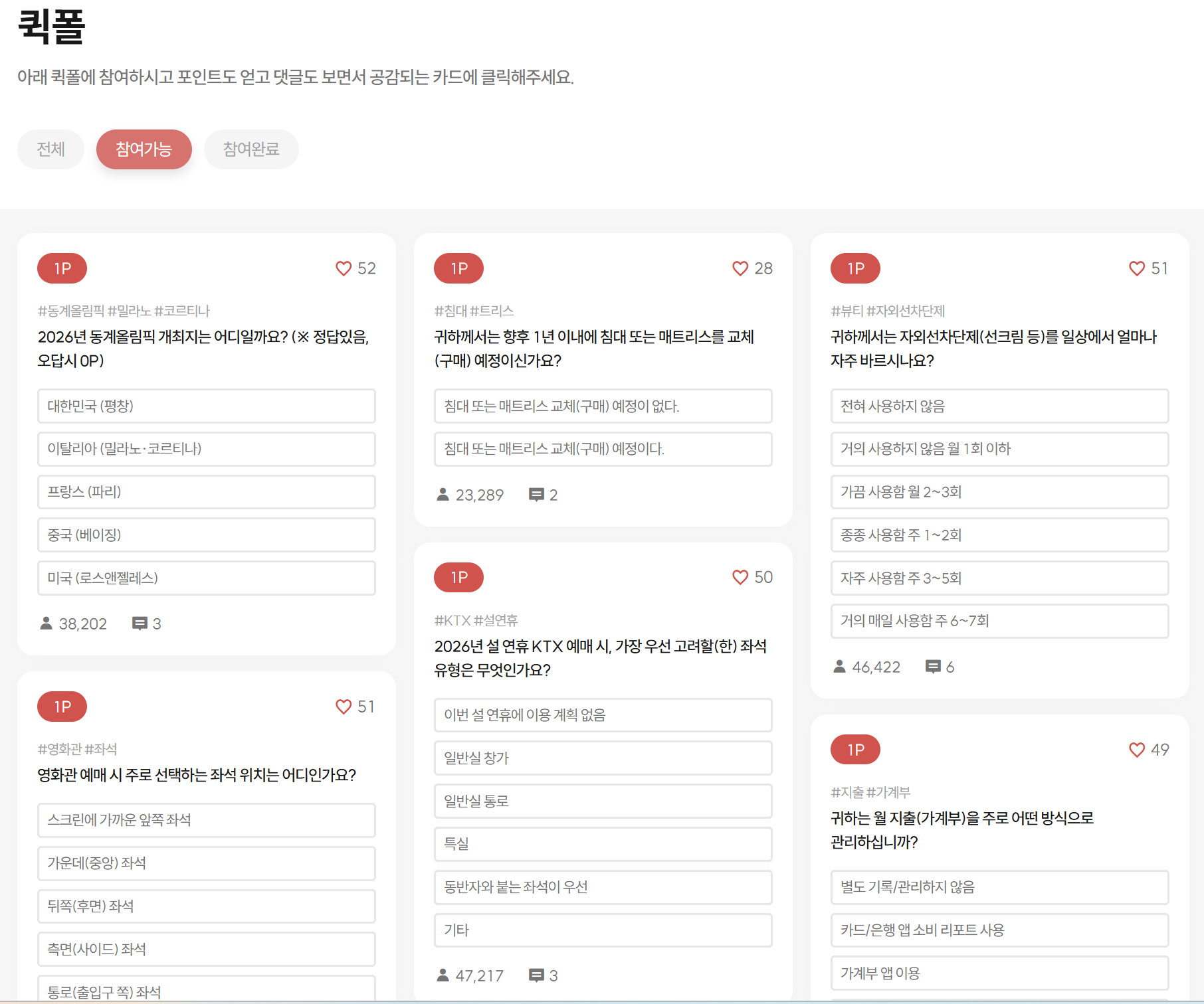 퀵폴만 참여해도 소액 포인트를 꾸준히 모을 수 있다.