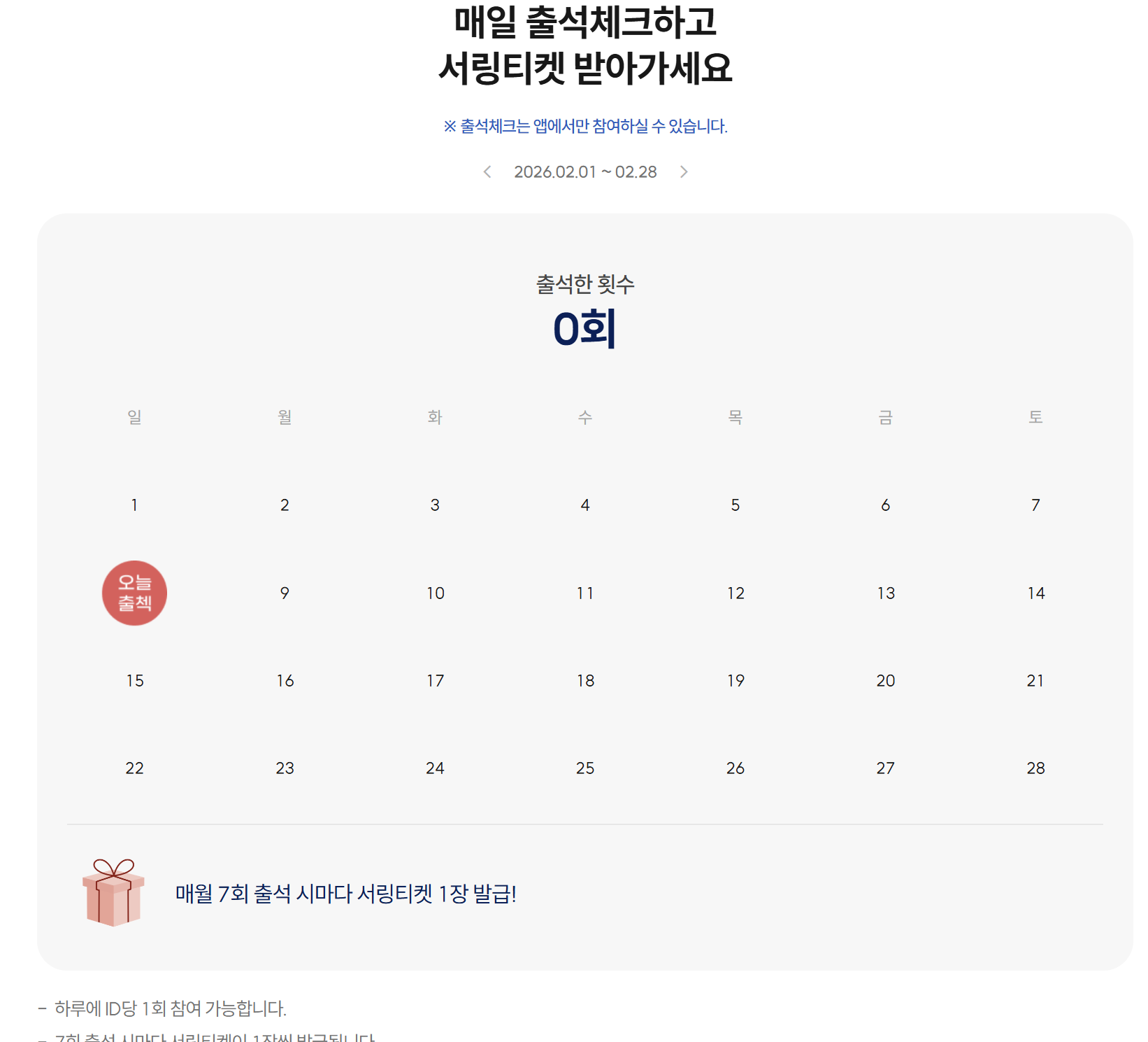 서베이링크 앱에서는 하루 1회 출석체크 보상이 제공된다.
