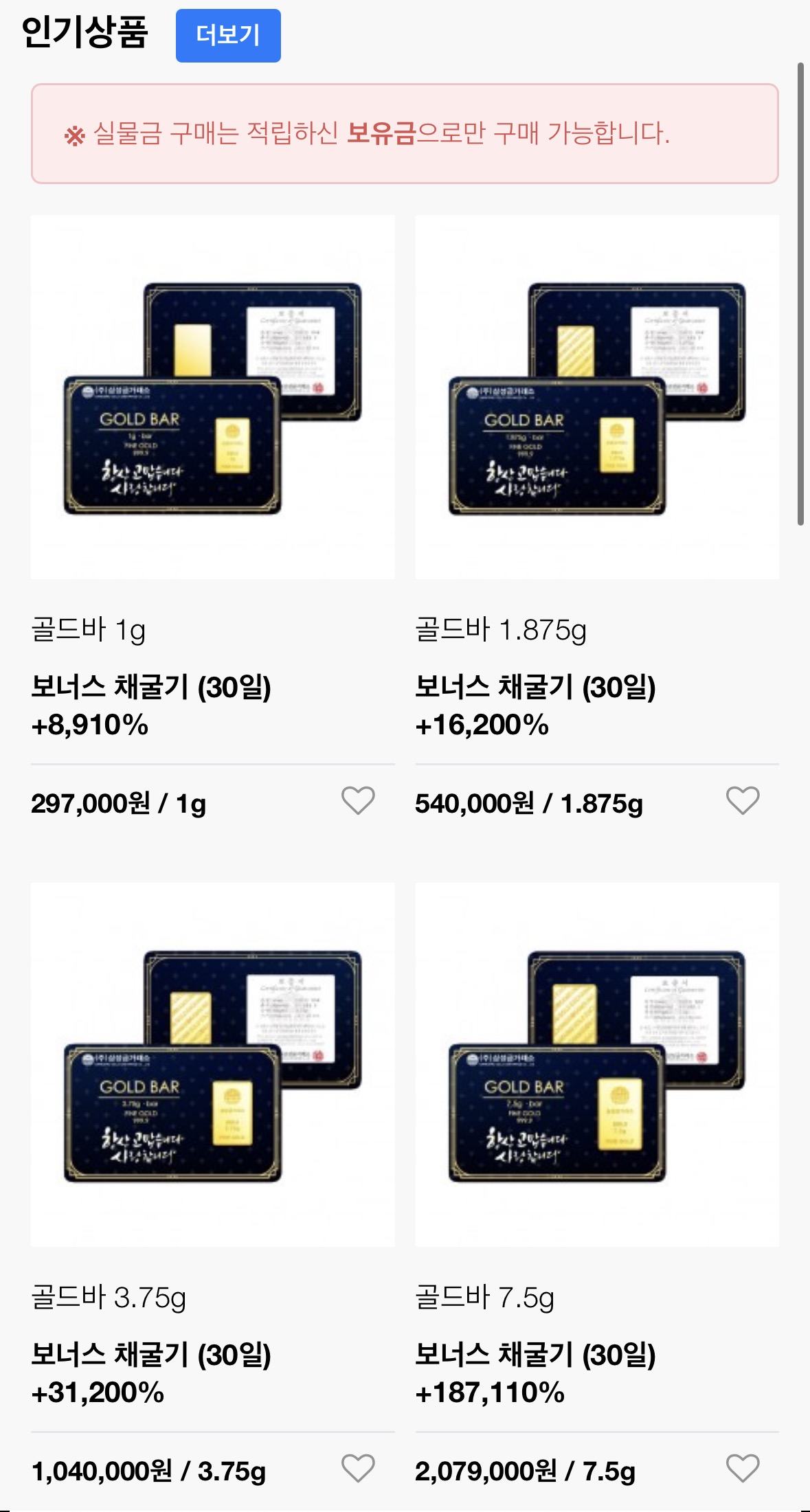 - 실물 금으로 교환 가능